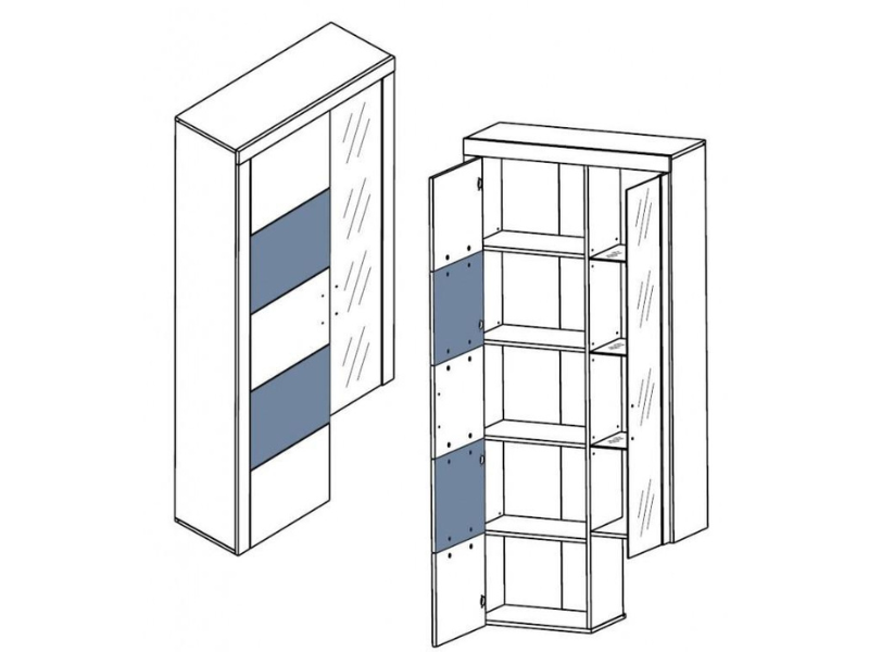 Az Alpin nappali vitrinkombináció meglehetősen praktikus és elegáns megjelenésű. A különböző textúrák és kontrasztos színek kombinációja kiemelik a többi közül. A modernista stílus kedvelői értékelni fogják az Alpin vitrinkombináció modern dizájnját. A vitrinek LED lámpákkal vannak felszerelve, ami különleges romantikus hangulatot kölcsönöz.