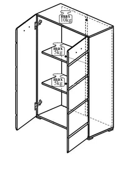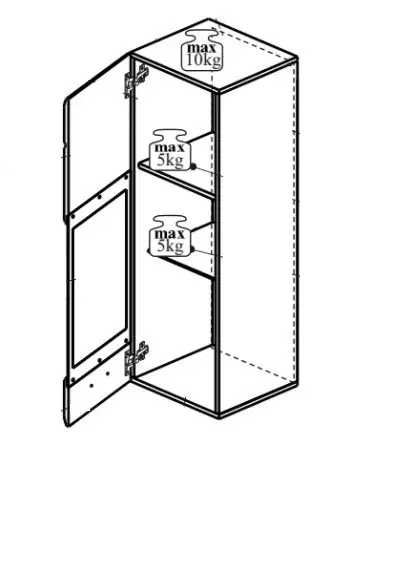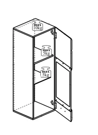 Terhelhetőség: polcoké, fiókoké max 5kg, fali polcoké, üvegpolcoké max 3kg