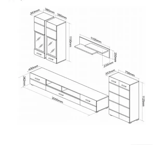 • Faliszekrények: 38x110x35 cm (szélesség, magasság, mélység)