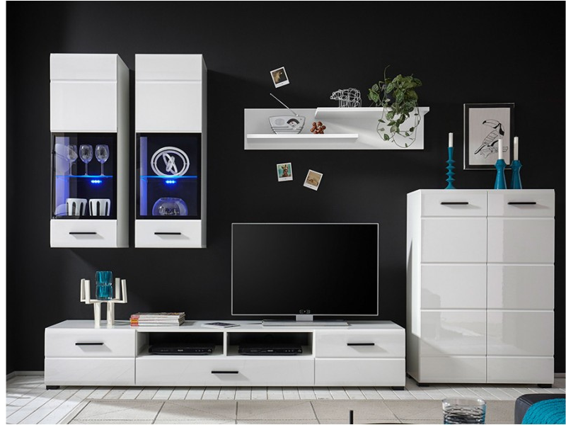 Az Arctic nappali vitrinkombináció tv állványa, komódja, faliszekrénye és fali polca egymástól független elemek, minimalista stílusban készül. Tökéletesen illeszkedik minden nappaliban.