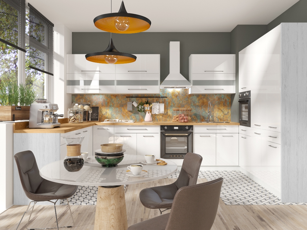 Szín: magasfényű fehér/fehér fenyő