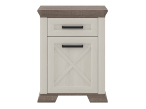 A Marsel bútorcsalád masszív kialakítás, homlokzati dekorcsíkok és sötét lapos fogantyúk jellemzik, kiemelve a formák szigorú geometriáját.