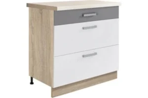 Az arany középút a konyhák világában: funkcionális, szép kinézet, kedvező ár. Fehér és szürke kombinációjú frontok, króm fogantyúkkal szerelve, modern és elegáns megjelenést biztosítanak. Prémium minőség, tágas tárolóhelyek és könnyű tisztíthatóság. Tökéletes választás új és felújított lakásokba egyaránt, hogy konyhája stílusos és praktikus legyen.