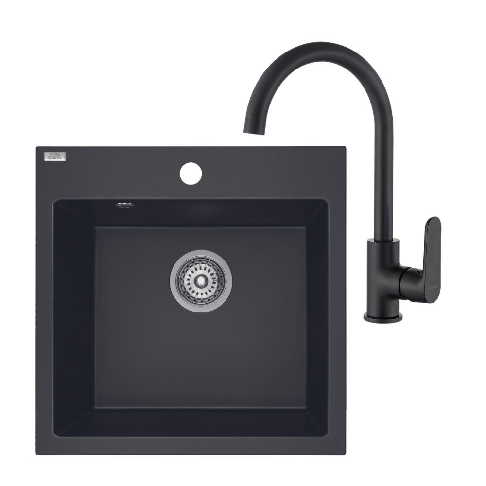 Laveo ALENA matt fekete szett álló csappal, helytakarékos szifonnal