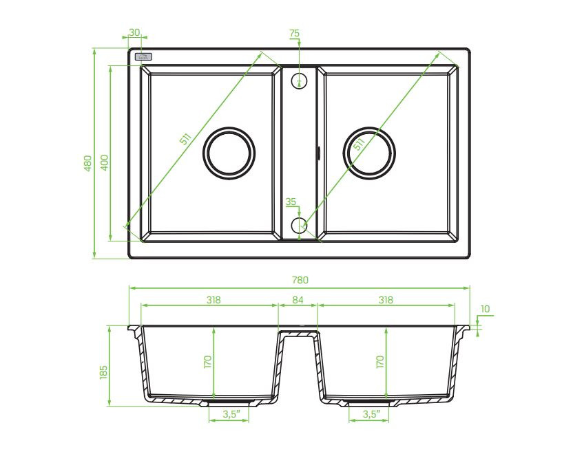 | Mosogatótálca méretek (mm) | |