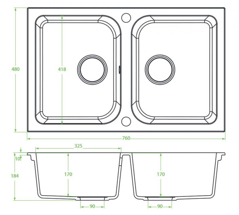 Laveo CELIA fehér kétmedencés mosogató dugókiemelős helytakarékos szifonnal