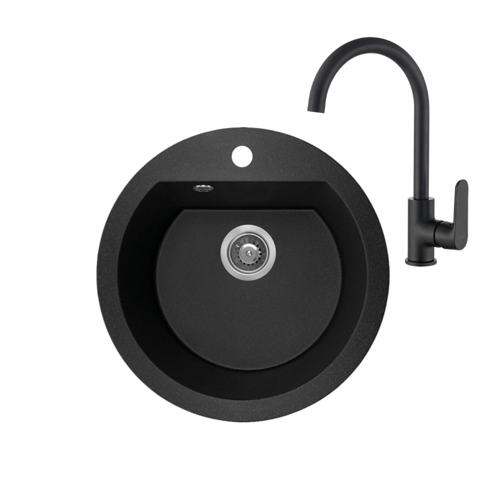 Laveo Dafne matt fekete szett álló csappal, helytakarékos szifonnal