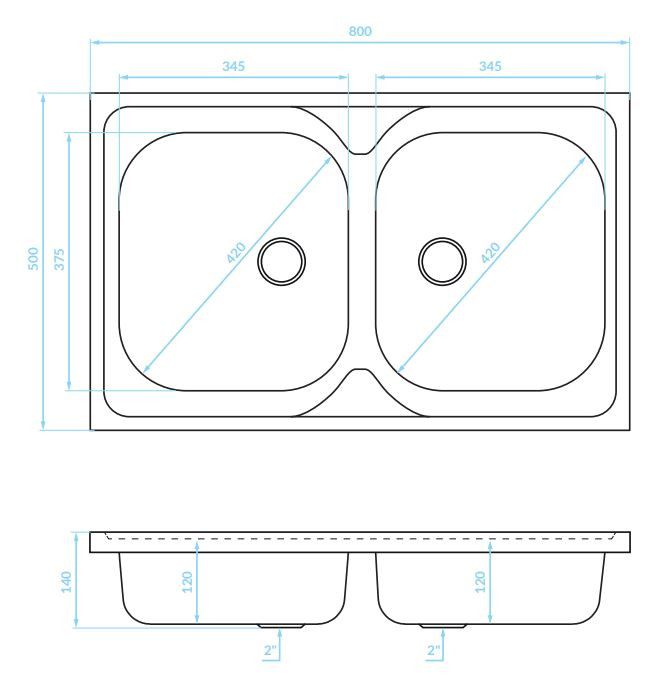 LAVEO LON 50 teletetős kétmedencés inox mosogató szifonnal K.