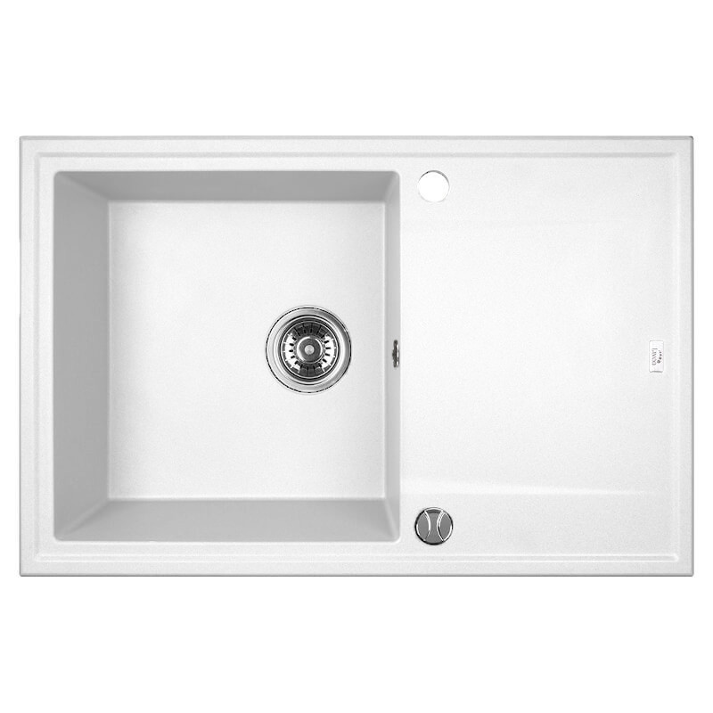 Laveo MEGALO csepptálcás fehér mosogató dugókiemelős helytakarékos szifonnal