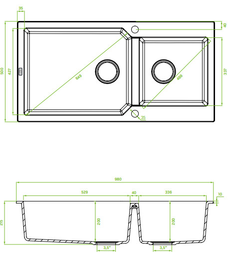 Laveo MILOS 2M 100 kétmedencés fekete gránit mosogató helytakarékos dugókiemelős szifonnal