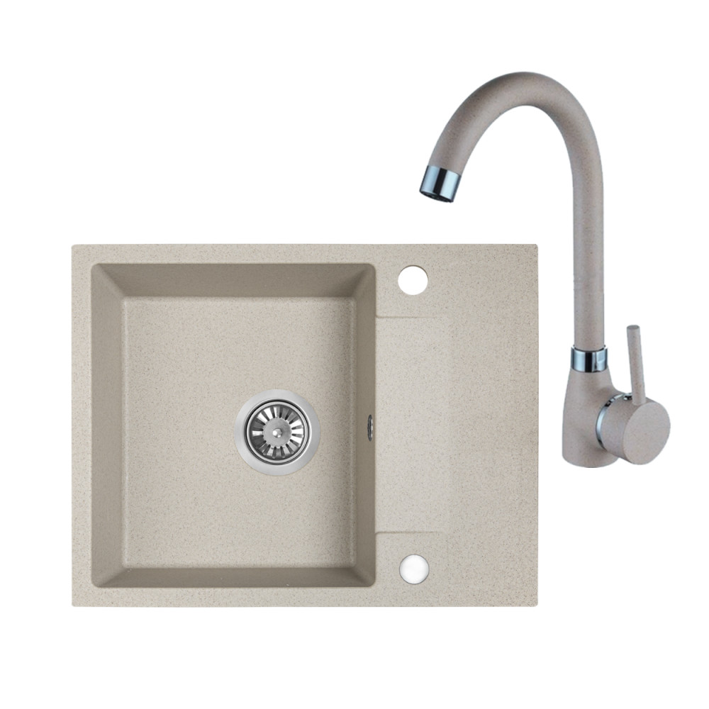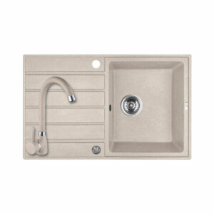 Laveo RAB MINI bézs szett álló csappal, helytakarékos szifonnal és csaplyuktakaró dugóval