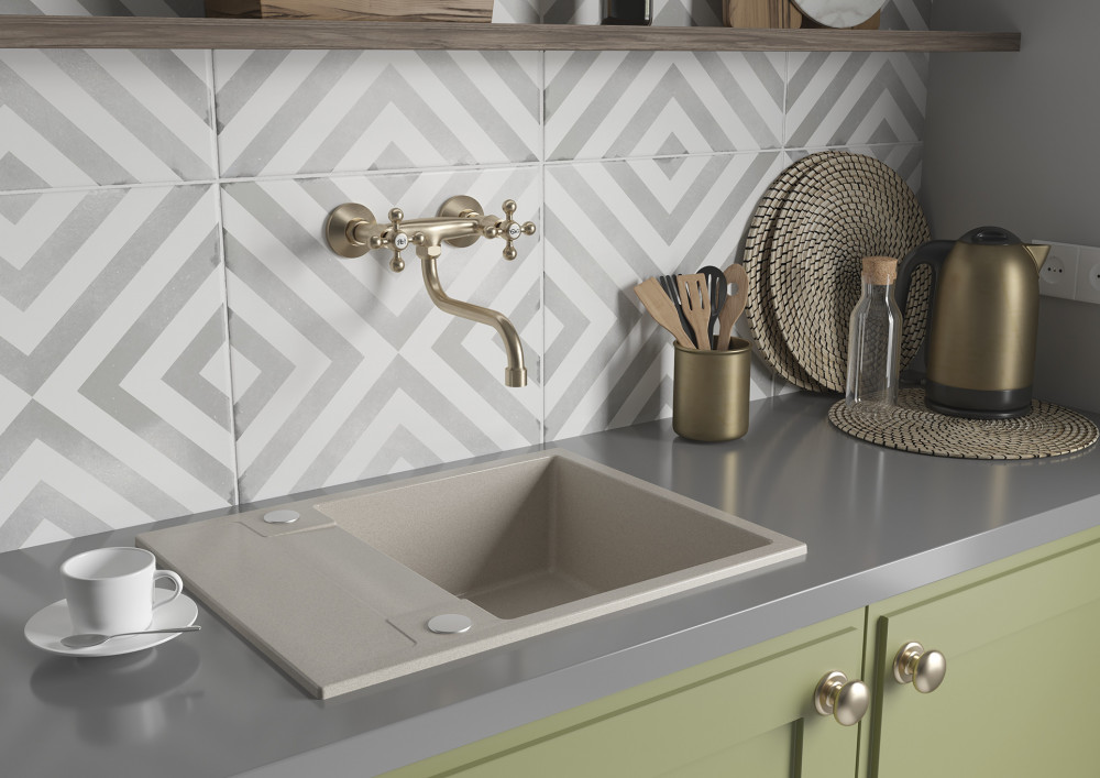 Laveo RAB MINI csepptálcás bézs mosogató helytakarékos szifonnal és csaplyuktakaró dugóval