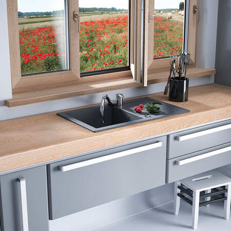 A LAVEO gránit mosogatók olyan gazdag választékkal rendelkező termékek, melyeket stílusos elegancia jellemez. A különféle formájú, méretű, színű modellek könnyen illeszkednek számos belső térhez, bútorhoz és miliőhöz. Mindegyik modell közös jellemzője: kiváló minőség, hosszú élettartam és magas ellenálló képesség. A LAVEO mosogatók gyártástechnológiájának alapja az alapanyagok arányos keveréke: 80% POLIGRAN, mely egy speciális gránit őrlemény, 20% poliészter gyanta, mely a külső hatásokkal szembeni magas ellenálló képességért – UV-álló, ütésálló, 250 °C-ig hőálló, illetve hősokkálló, ellenáll a háztartási savaknak, nem veszti el színét – felelős. A LAVEO mosogatókat Európában gyártják, minőségüket szakemberek ellenőrzik. A gránit mosogató kompozit anyagára 10 év garanciát biztosít a LAVEO. A LAVEO mosogatókhoz hasznos kiegészítőket (vágódeszkát, evőeszköz tartót, bortatót, mosogatószer adagolót, egyedi lefolyókat, stb.) is forgalmazunk, melyek webáruházunkban szintén megtalálhatók.