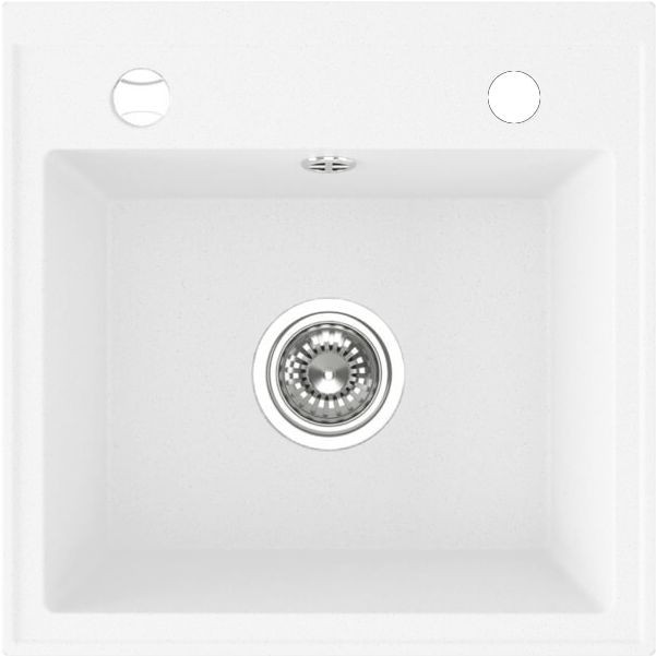 Laveo RINA egymedencés fehér mosogató csaplyukkal, automata dugókiemelős, helytakarékos szifonnal