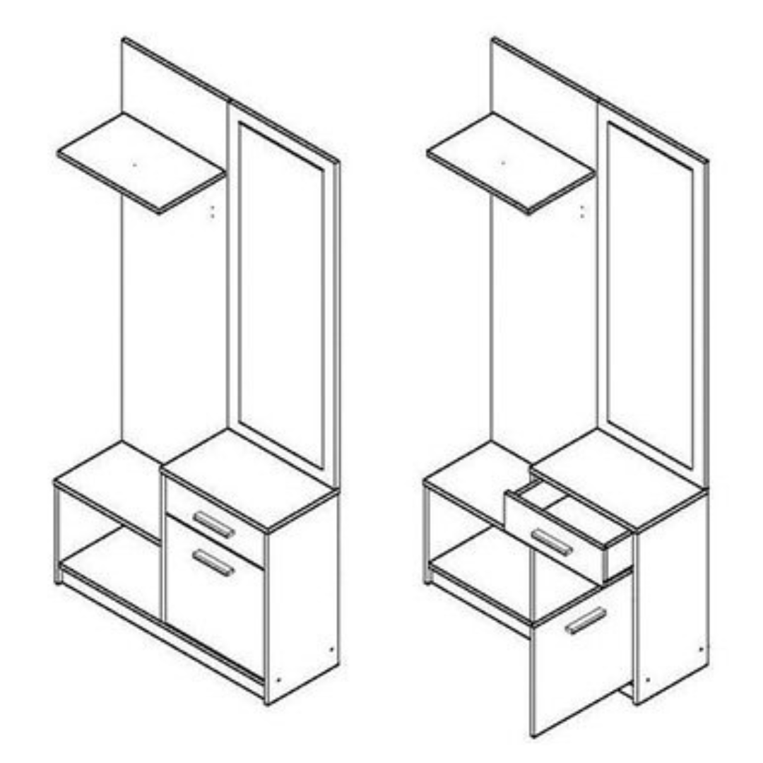 Alapanyag: laminált bútorlap Csomagolás: papírkarton Dobozszám: 4db Terhelhetőség: A bútorban található bútorlapos polcoké, fiókoké max 5kg Kiszerelés: lapraszerelt Szerelhetőség: csak a képen látható módon szerelhető