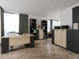 office-new-elemes-irodabutor-csaladAz Office New bútorcsaládot a textúrák kontrasztos kombinációja, a letisztult vonalak, a szigorú formageometria, a masszív, 16 mm vastag laminált asztallap és a hosszúkás Etera Plast műanyag fogantyúk jellemzik.