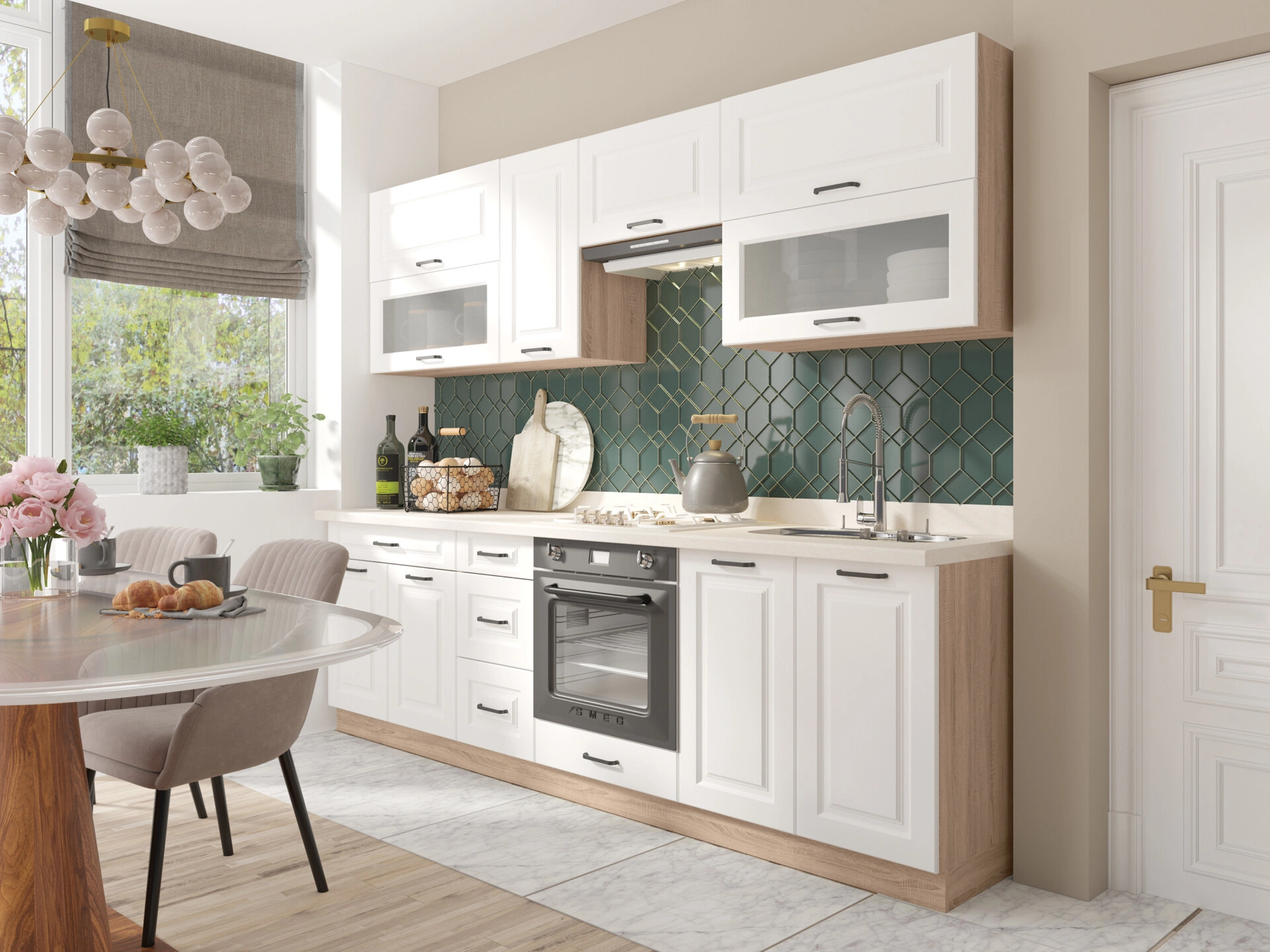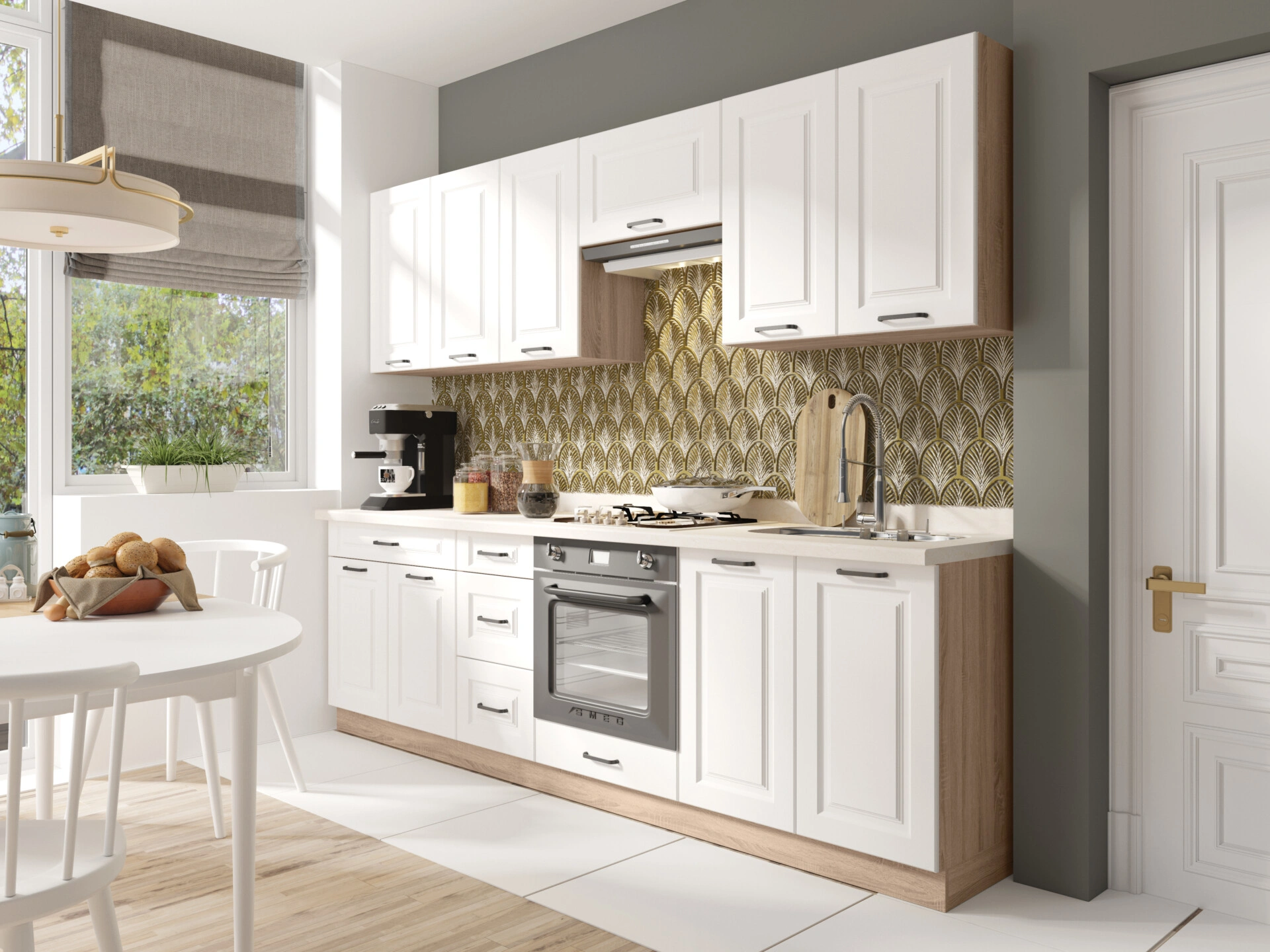 A Smart konyha elemei letisztult eleganciát és modern stílust sugallnak. A fehér szín tágas és tiszta megjelenést kölcsönöz a térnek, miközben könnyen kombinálható más színekkel és stílusokkal. A konyha elemei a funkcionalitást és esztétikát egyesítik, megteremtve a tökéletes környezetet az ételkészítéshez és a mindennapi tevékenységekhez. Időtlen és stílusos megoldást kínálnak minden otthonnak.