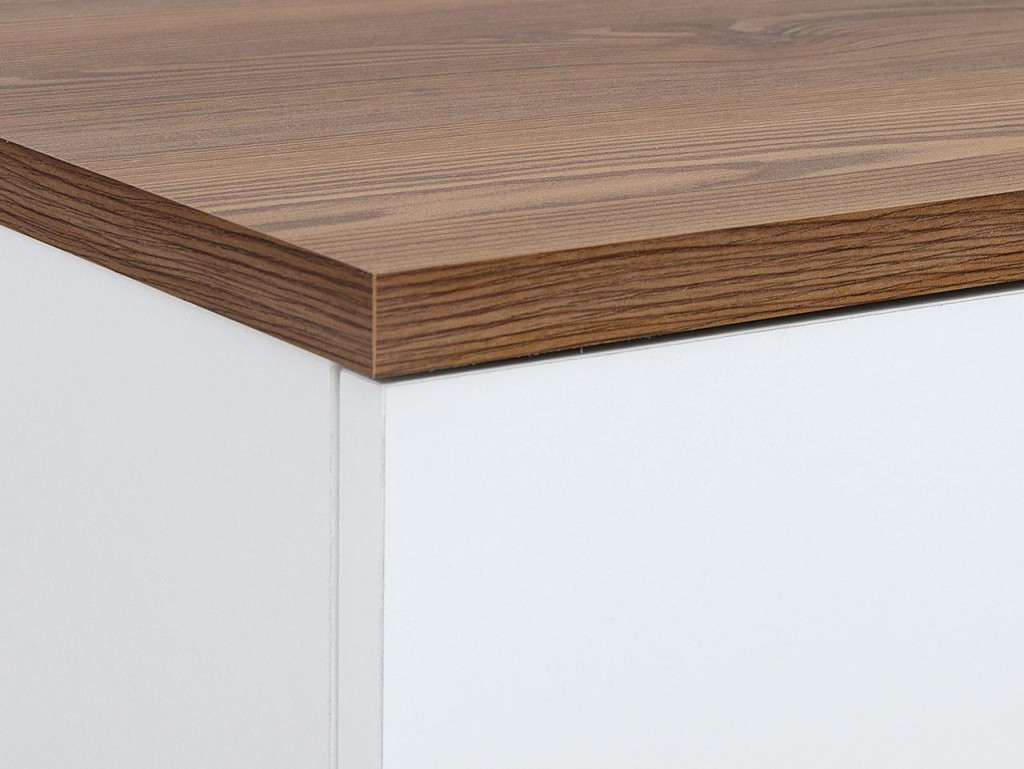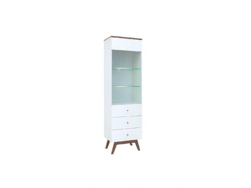 Típus: Vitrines szekrény Szín: fehér/verona dió Alapanyag: laminált bútorlap MDF Csomagolás: papírkarton Terhelhetőség: A bútorban található bútorlapos polcoké, fiókoké max 5kg Kiszerelés: lapraszerelt